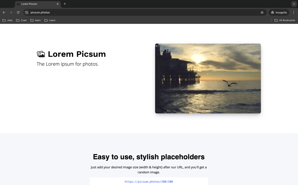 Untuk kebutuhan gambar, teman-teman bisa menggunakan website https://picsum.photos :